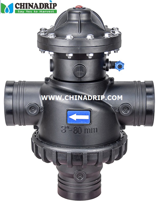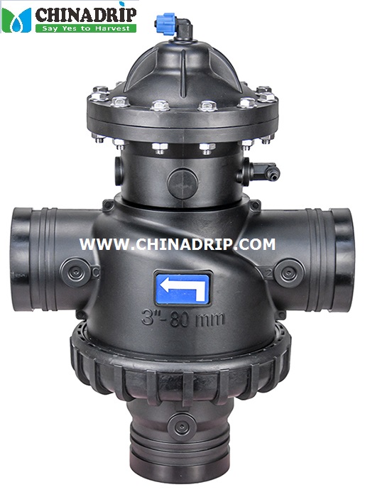 1.ซึ่งรวมกันโดยหลาย ๆ วาล์วนี้เป็นวาล์วไฮดรอลิก 3 ทางรูปตัว T พร้อมด้วยห้องคู่ทำงานด้วยระบบไฮดรอลิกและไดอะแฟรมกระตุ้นซึ่งเหมาะสำหรับการล้างย้อนอัตโนมัติต่างๆของระบบกรอง