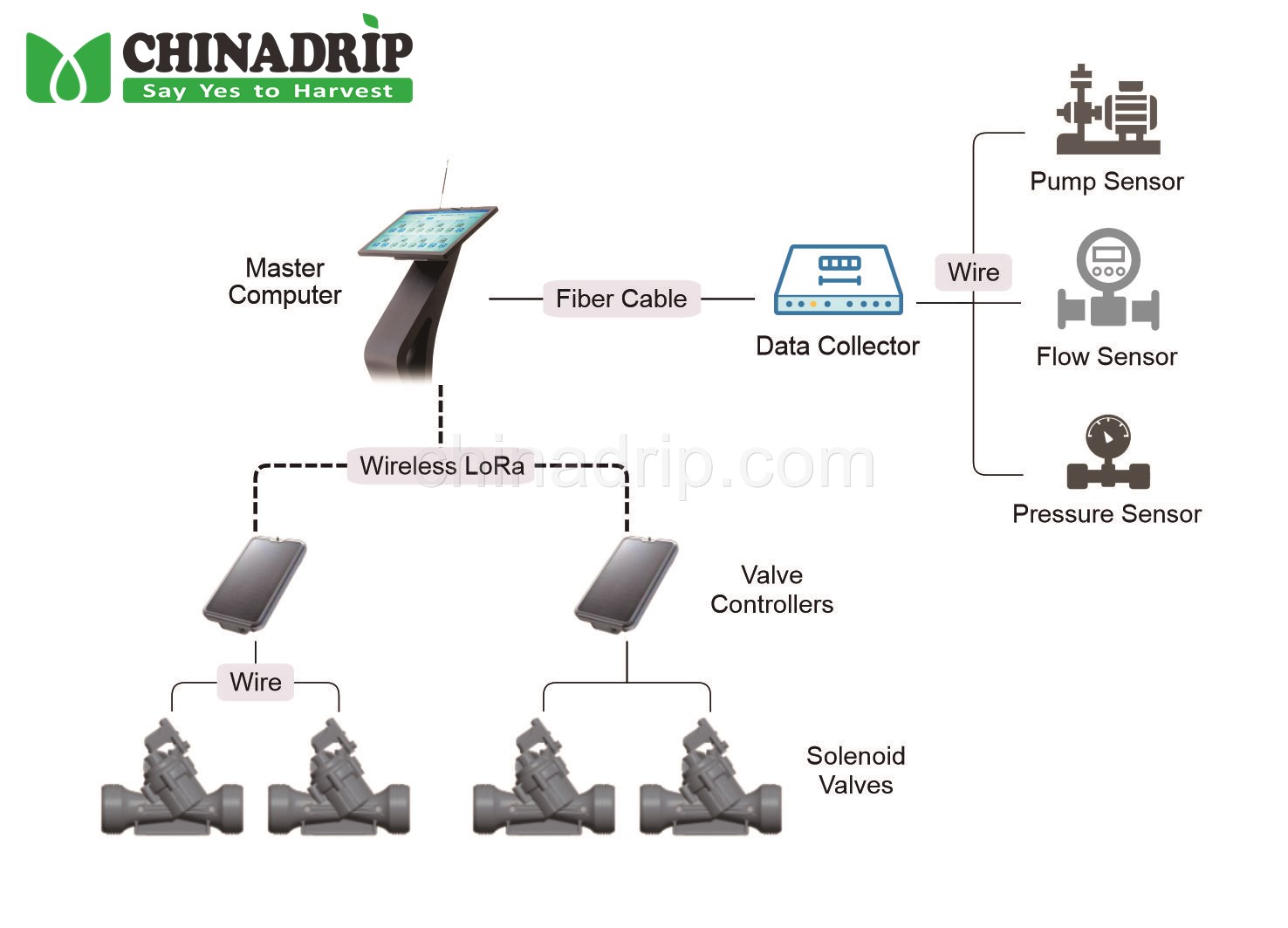 สำหรับเก็บรวบรวมข้อมูลการชลประทาน ได้แก่ ค่าการนำไฟฟ้า (EC), ค่า pH, อัตราการไหล และแรงดัน โดยจะส่งค่าข้อมูลเหล่านี้ไปยังคอมพิวเตอร์หลักเพื่อแสดงและบันทึกข้อมูลแบบเรียลไทม์